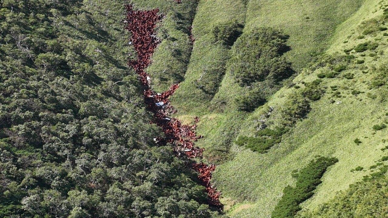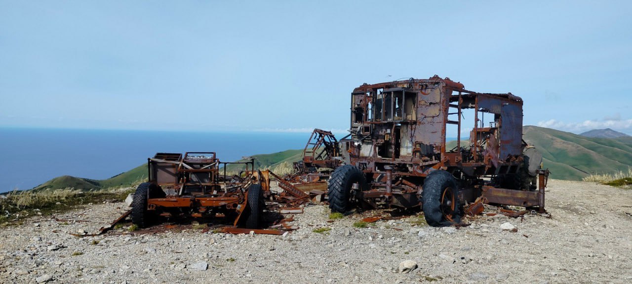 Недавно специалисты Агентства лесного и охотничьего хозяйства обследовали с воздуха территорию на горе Крузенштерна (Корсаковский район) — и зафиксировали крупную свалку старой техники и металлических бочек.