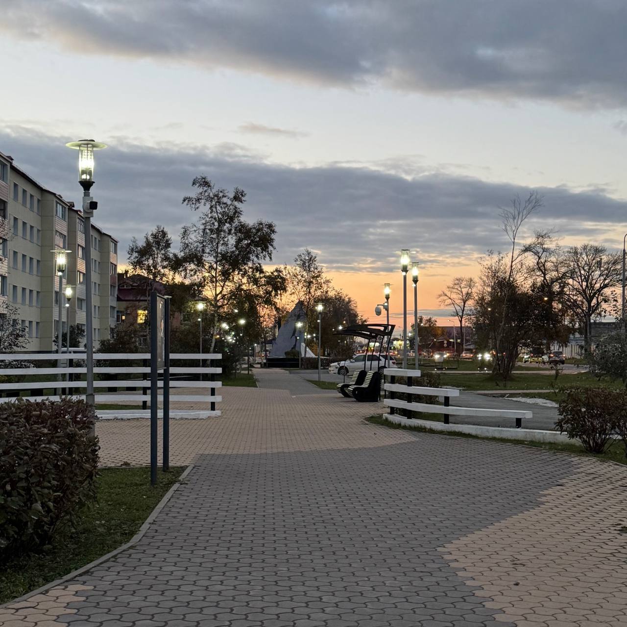 Особая атмосфера с утра в наших планировочных районах. Здесь, в сквере «Сахалин», сегодня был живописный осенний рассвет