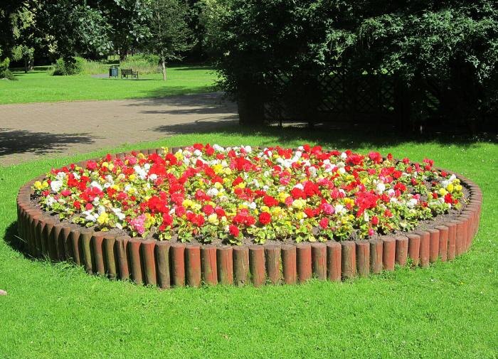 Создавая клумбу, важно планировать расположение растений: высокие разнообразия уместно расположить в центре, а низкорослые, такие как карпатский колокольчик или гвоздика, разместить по краям, формируя четкий и структурированный дизайн.