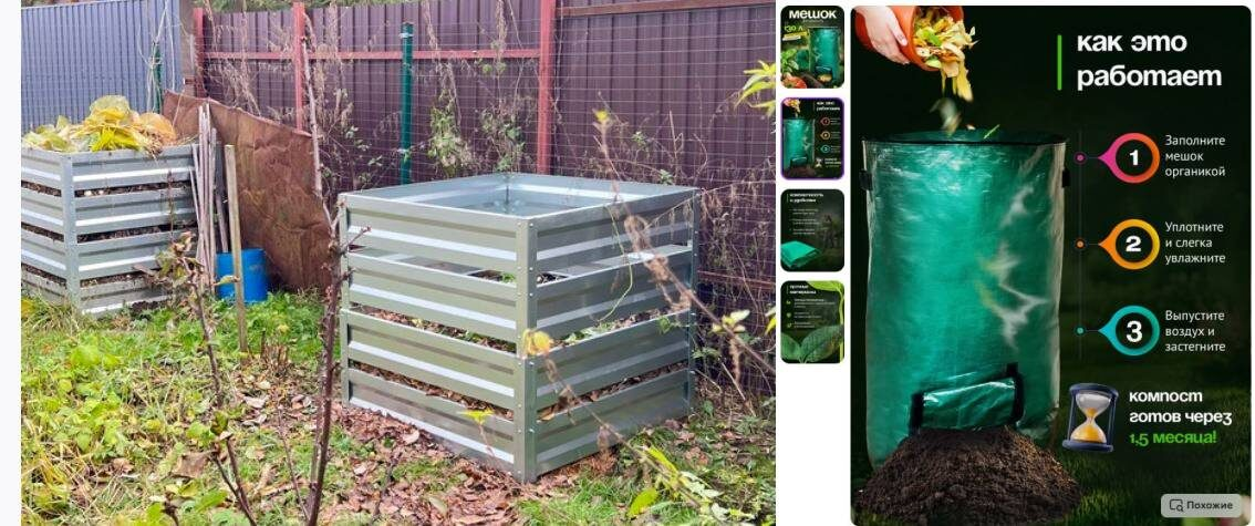 Существуют также рекомендации по выбору конструкции. Многие выбирают металлические компостеры с вентиляцией, которые хороши для окислительных процессов, в то время как сплошные мешки могут быть менее эффективными.