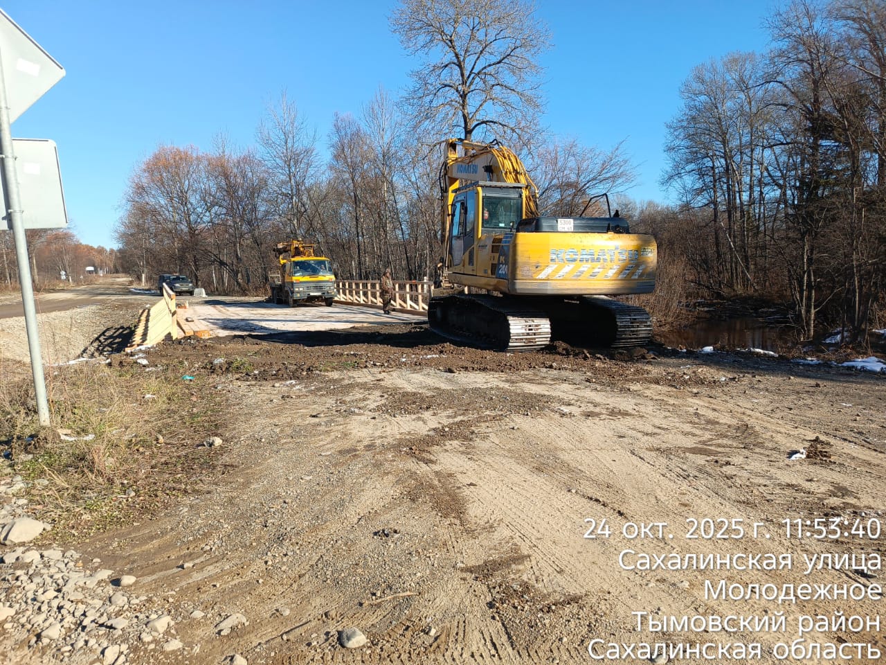 Подрядная организация АО «Тымовское ДРСУ» завершила капитальный ремонт моста на въезде в село Молодёжное Тымовского района, а также сделала подъездные пути к нему. Движение на участке автодороги открыто с 24 октября.