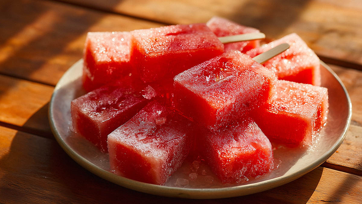 Другим вариантом будут арбузные «леденцы» на палочке. Нарежьте арбуз треугольниками, вставьте деревянные палочки и заморозьте на пару часов. Можно дополнительно окунуть дольки в растопленный шоколад и посыпать орехами для разнообразия.