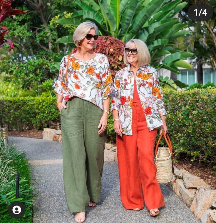 - Цветочные мотивы: Яркие цветочные принты не только привлекают внимание, но и создают свежий и живой образ. Например, блузка с экстравагантным цветочным рисунком отлично комбинируется с легкими брюками натуральных оттенков, такими как болотный или оранжевый.