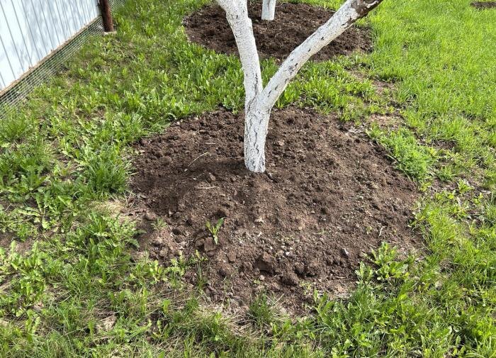 Чтобы приготовить побелку, в большую емкость помещают 2 кг гашеной извести и аккуратно заливают 10 литров кипятка. Накрывают тканью и ждут охлаждения. Затем добавляют фунгицид, 1 кг глины и одну лопату перепревшего навоза, тщательно перемешивают. Более простой вариант — покупка готовой побелочной смеси, например, садовой водоэмульсионной краски, которая держится на деревьях от года до двух. Наносить её стоит при температуре выше нуля, так как для высыхания потребуется около суток.