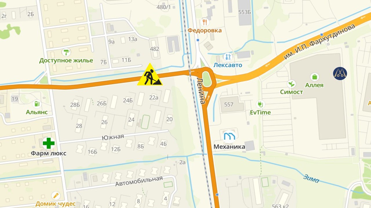 На время работ по восстановлению асфальтобетонного покрытия в вечерние, ночные и утренние часы ограничат движение автотранспорта на 2 километре юго-западного объезда (от кругового перекрестка улиц Ленина и Фархутдинова до улицы 1-й Октябрьской).