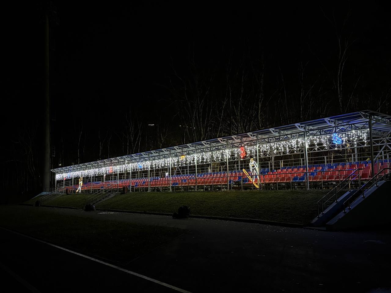 Подсветка уже появилась на опорах фонарей и на стадионе «Космос».