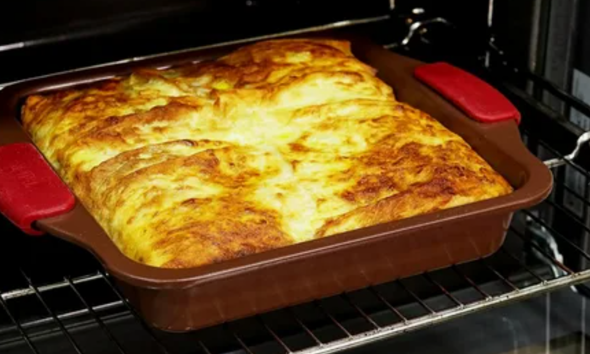 - Кефирное тесто: Быстрое и простое, его не нужно раскатывать. Все компоненты смешиваются, и половина смеси заполняет форму, затем добавляется начинка, покрытая второй половиной теста.