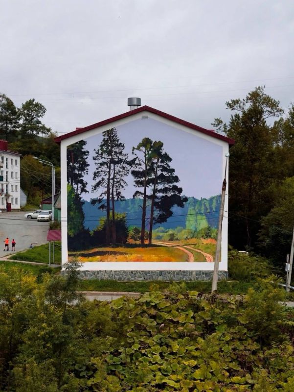 Мурал можно увидеть по адресу: Синегорск, ул. Коммунистическая, 67