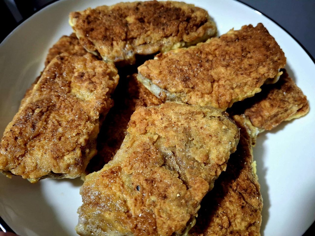 По истечении времени маринования каждая пластина обмакивается в муку, затем окунается в взбитое яйцо и, наконец, обсыпается панировочными сухарями. В сковороде необходимо разогреть достаточное количество масла, чтобы медальоны готовились равномерно. Обжаривать до золотистой корочки, что займет около 3–5 минут с каждой стороны.