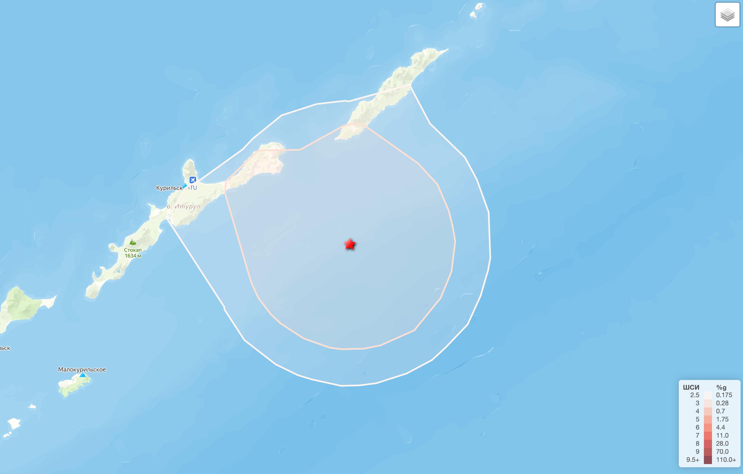 Землетрясение магнитудой 5,0 зафиксировали у берегов Южных Курил