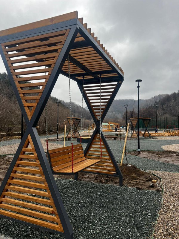 В холмском экологическом парке «Зеленая гавань» уже появились интерактивная детская площадка, скейт-парк, танцевальный павильон и скульптуры животных. Все зоны объединены велолыжной трассой. Вдоль реки обустроили променад и мангальную зону с беседками.