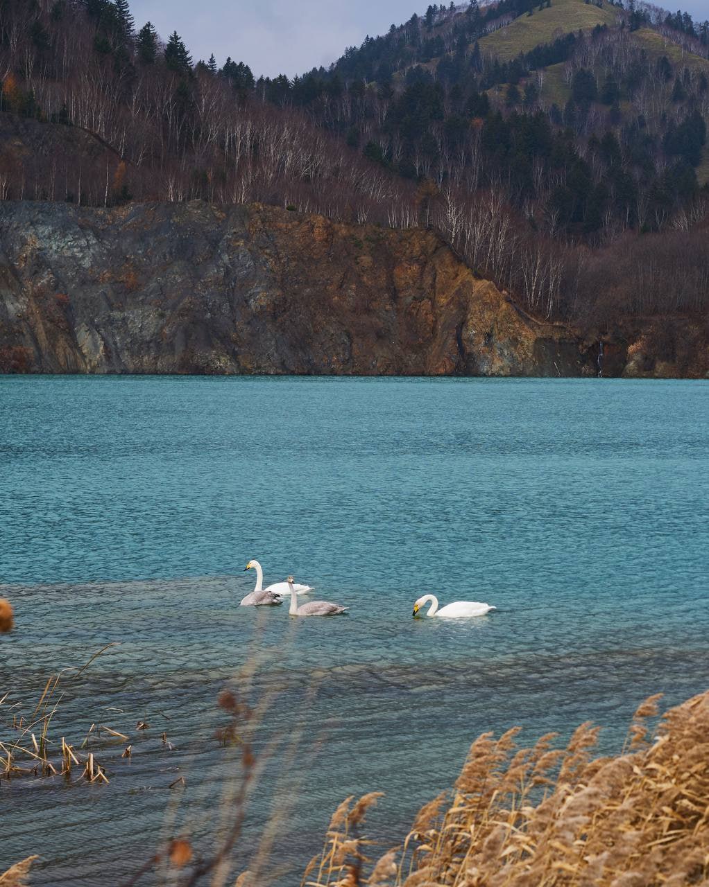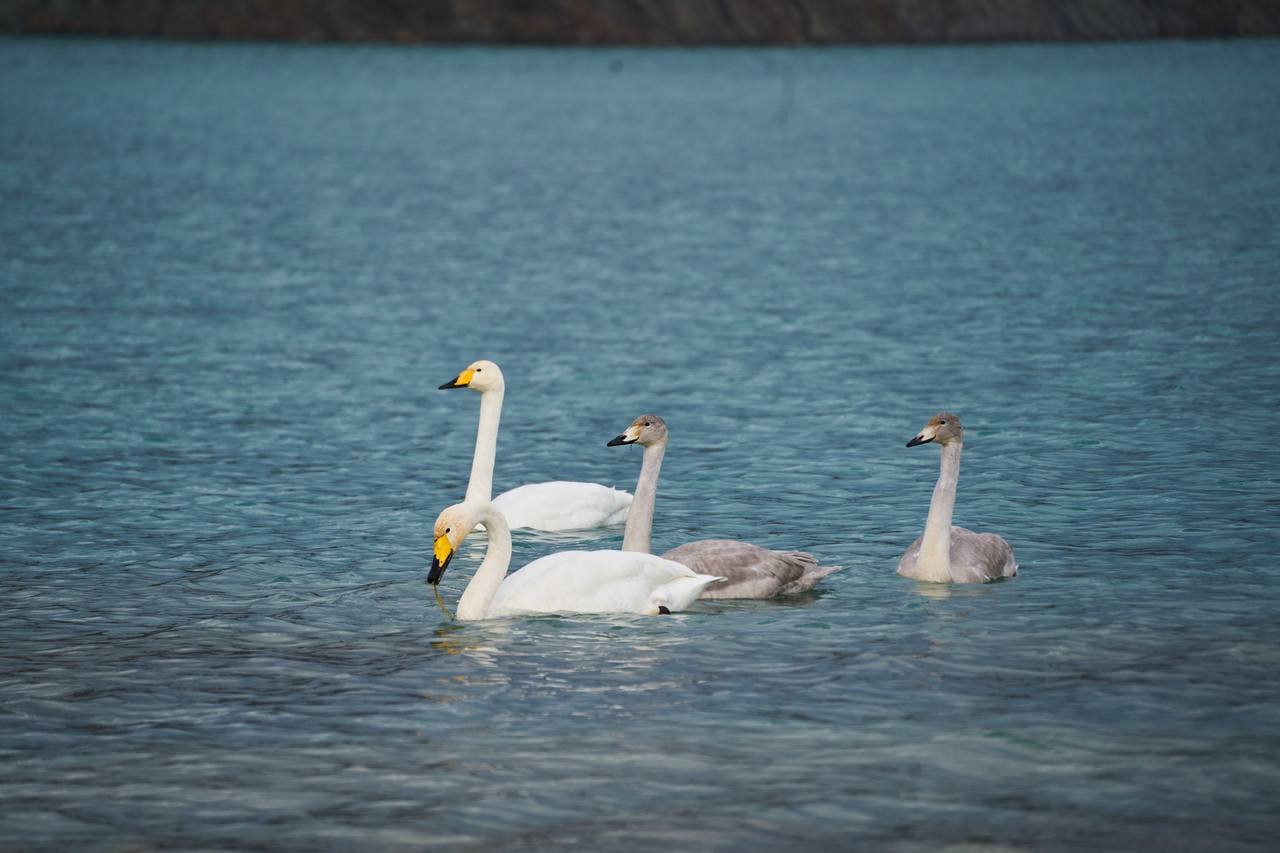 Лебединую идиллию запечатлели на юге Сахалина