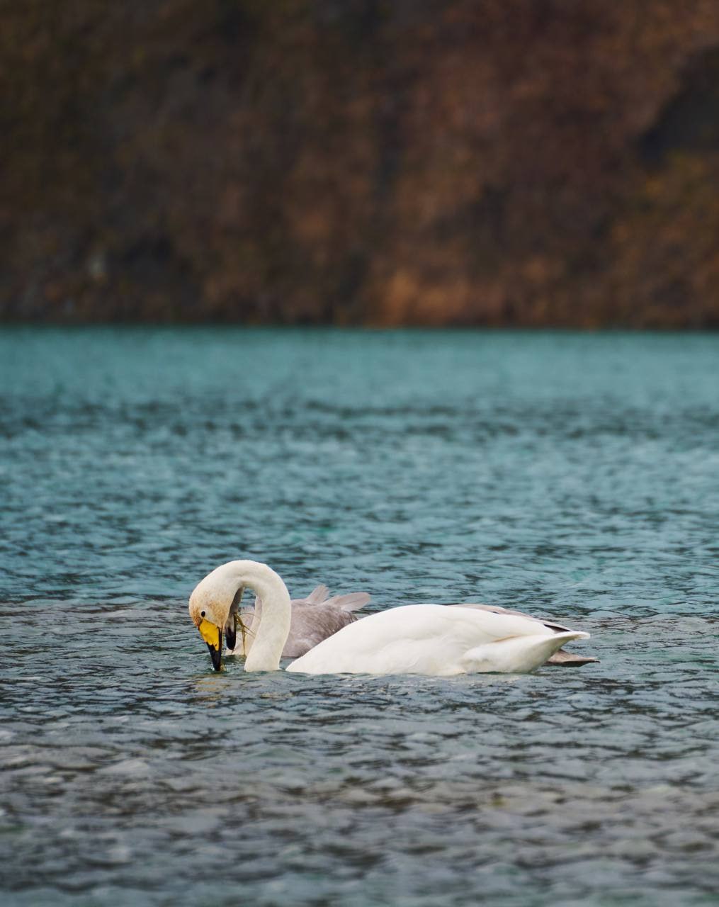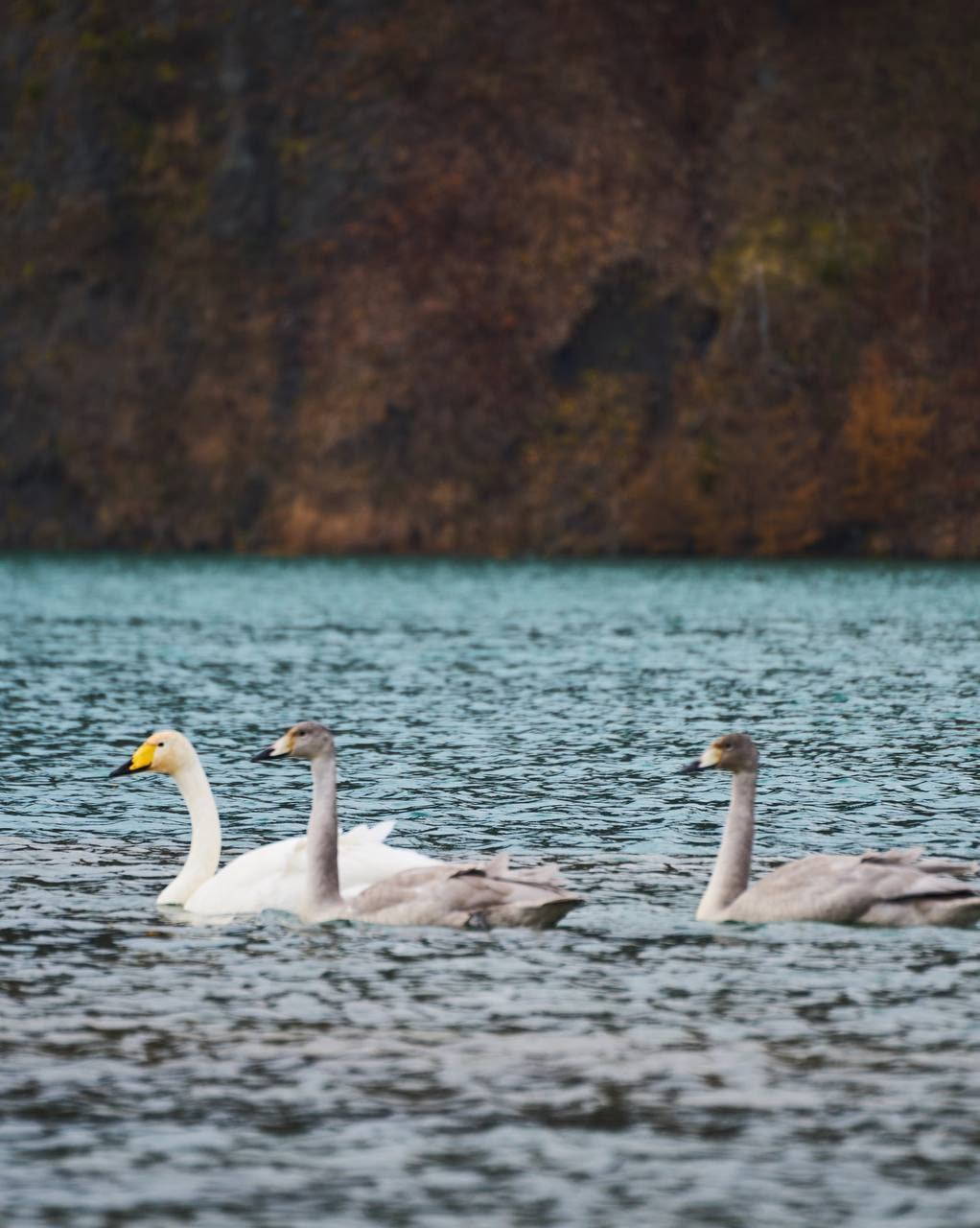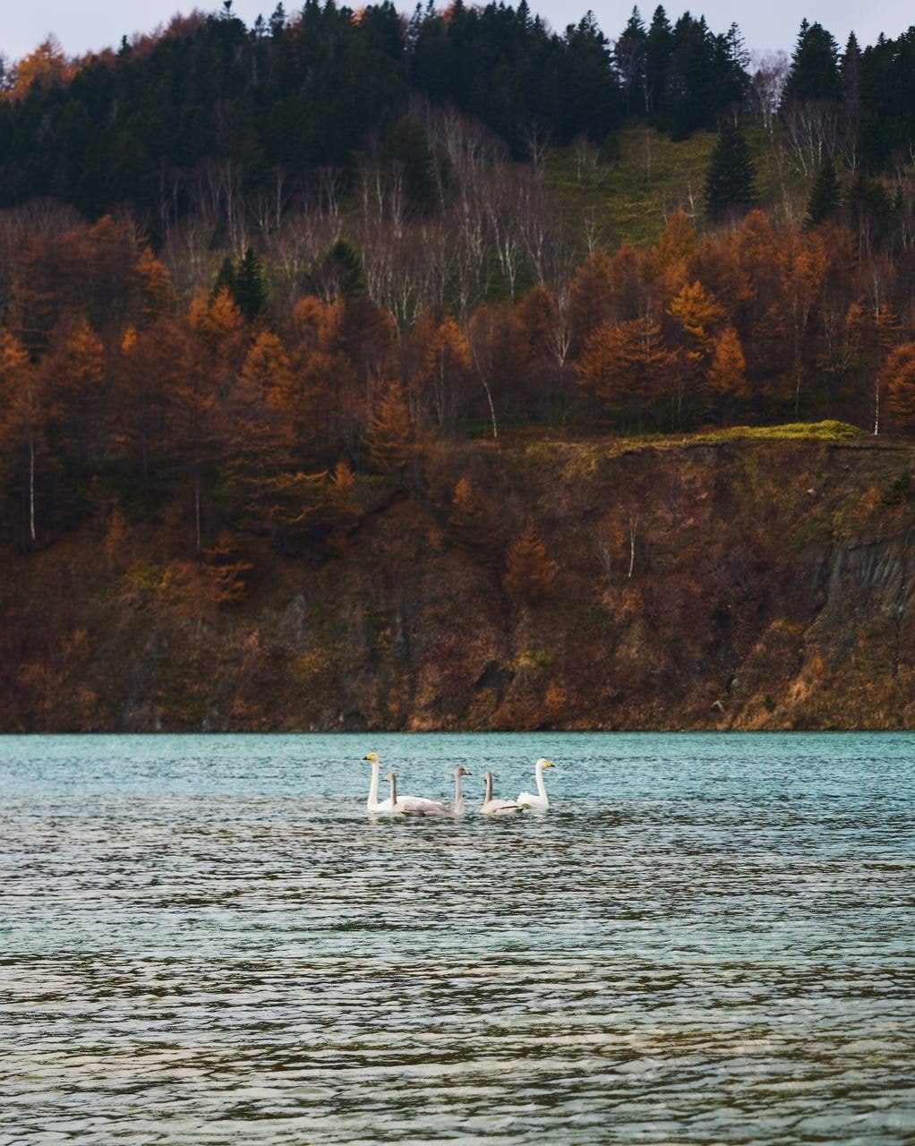 В этом сказочном пейзаже островитяне встретили семью лебедей. Белоснежное оперение пернатых создало контраст с яркой водной гладью и осенней золотой листвой.