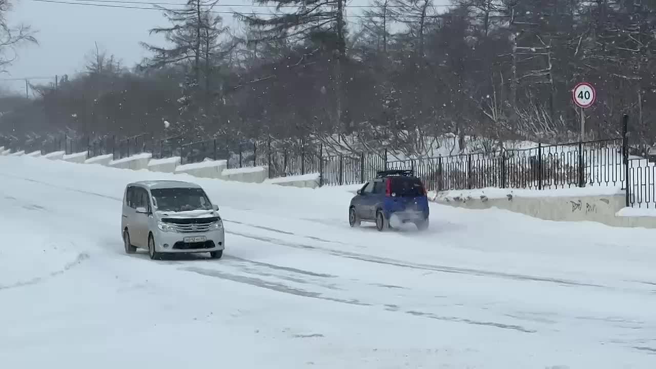 Непогода принесла ветер с порывами до 20 метров в секунду и снег. В основном, ночью. Сейчас ветер начинает немного стихать, но полностью циклон покинет северные районы только завтра. А пока немного снежной Охи в ленту
