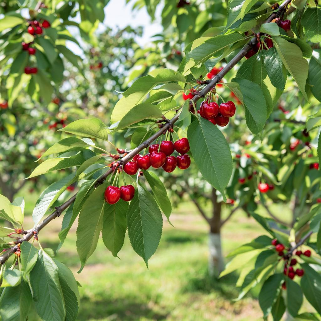 Первые годы жизни черешни критически важны для создания правильного скелета дерева. Садоводы чаще всего используют разреженно-ярусную или чашевидную формировки. В разреженно-ярусной системе создаются 5-6 основных ветвей, которые располагаются ярусами и должны отходить от ствола под углом не менее 45 градусов. Это поможет избежать разломов. Чашевидная форма позволяет создать более низкую и раскидистую крону, что облегчает уход и сбор плодов.