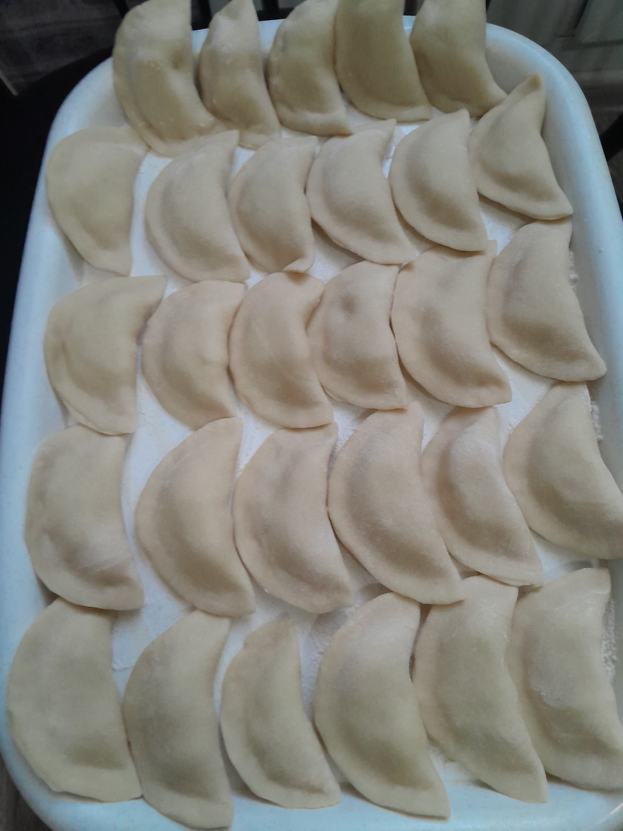 Приготовление начинается с замешивания теста. В муку добавляются яйцо, соль, растительное масло, а затем потихоньку вливается кипяток. Вымесив тесто до эластичности, его оставляют на 20-30 минут. Начинка готовится из отваренного картофеля и обжаренного лука, который добавляется в пюре вместе со сливочным маслом. Все должно получиться идеально гармоничным.
