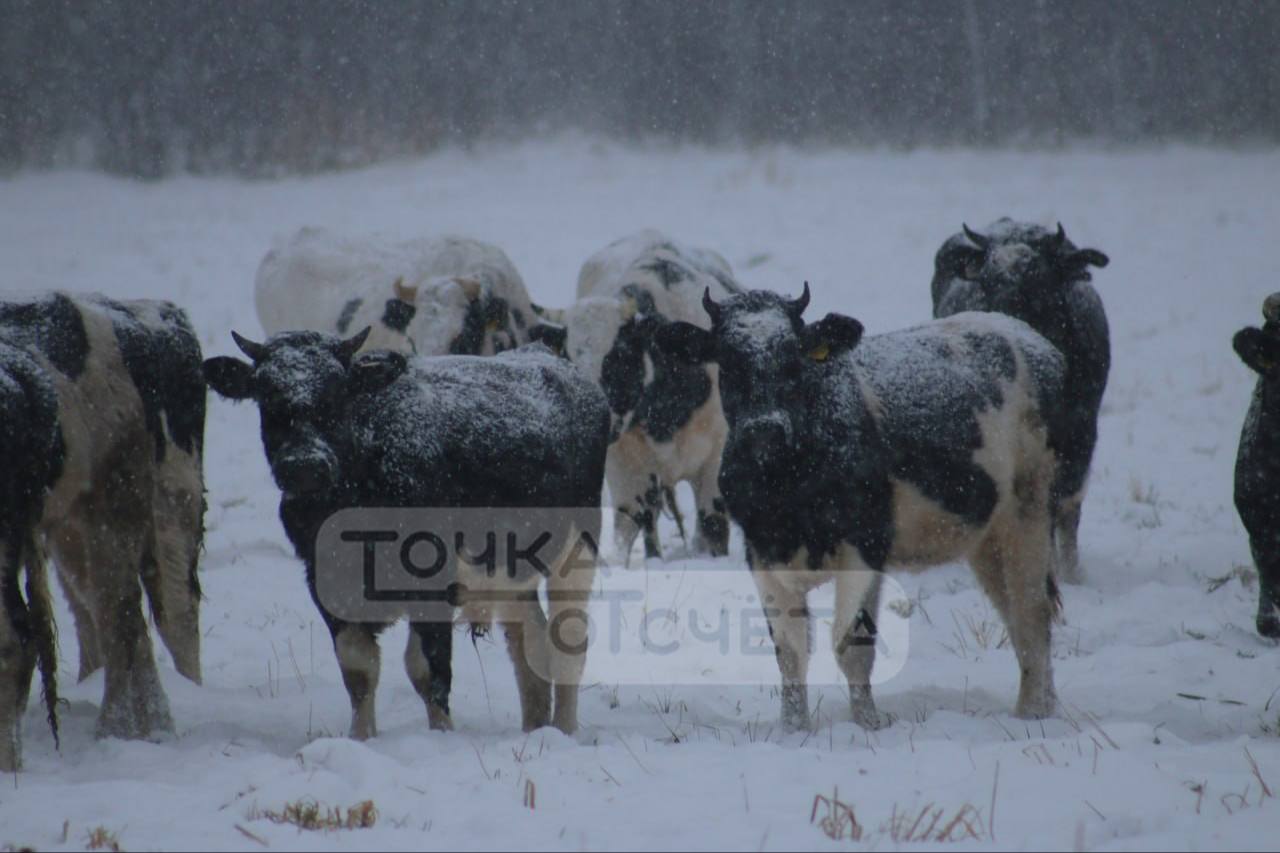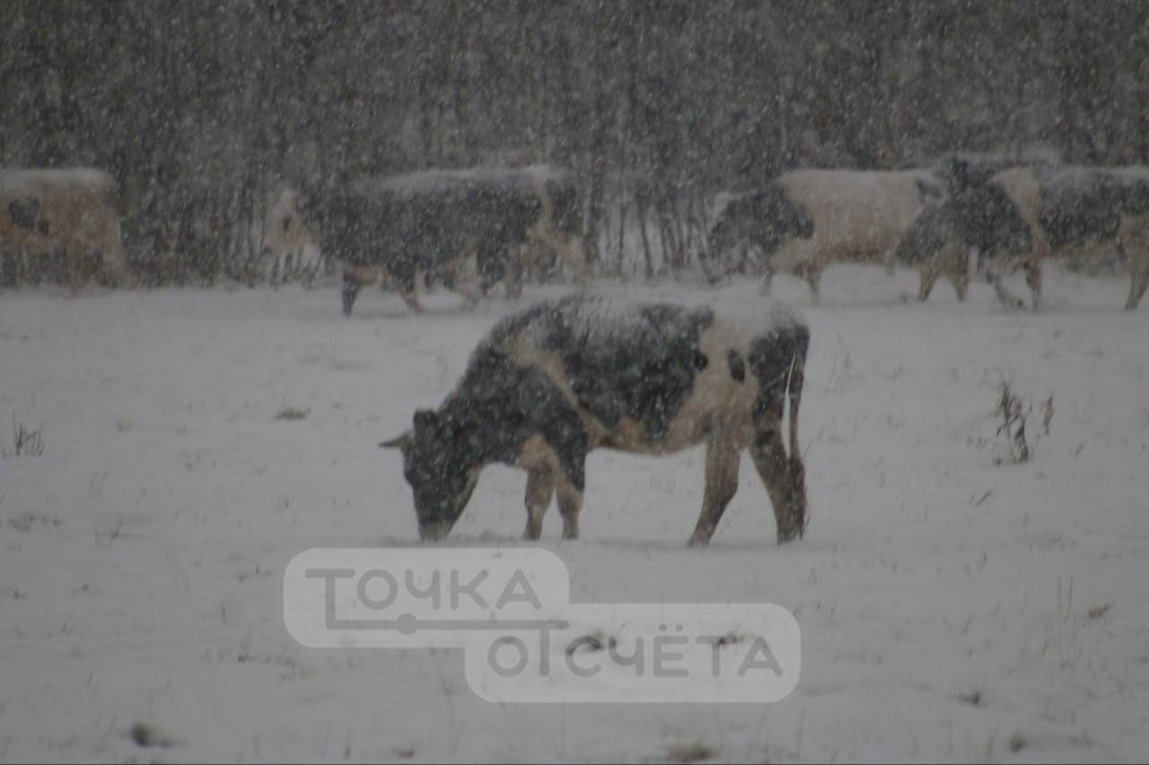 Кто-то бросил стадо коров в поле на произвол судьбы в метель. Сахалинцы сообщили, что животные бродят в поисках еды уже несколько дней
