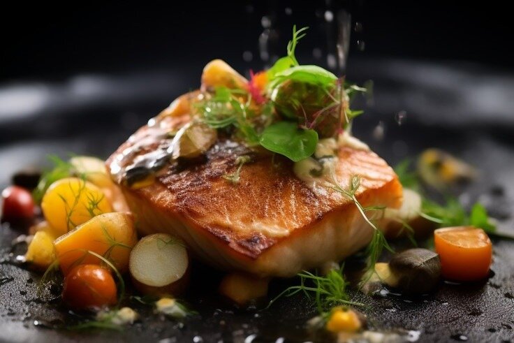 - Лосось с травами: Достаточно 40 минут при температуре 50°C, а затем обжарить по минуте с каждой стороны.