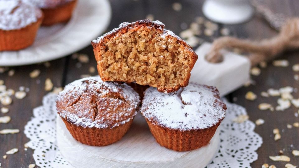 - Ингредиенты: вам понадобятся 200 г творога, 50 г сливочного масла, 100 г сахара, 10 г ванильного сахара, 2 яйца, 200-220 г овсяных хлопьев, 1 ч.л. разрыхлителя и 1 ч.л. корицы. Также необходим растительное масло для смазывания форм и сахарная пудра для украшения по желанию.