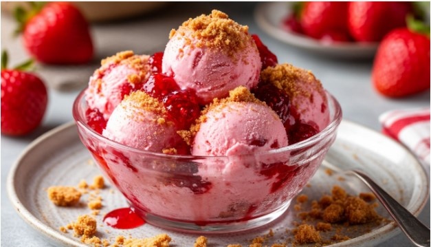 Подавайте мороженое в креманках, добавляя сверху оставшийся джем и посыпая крошкой печенья. Этот десерт не только порадует ваших близких, но и станет звездой любого летнего праздника.