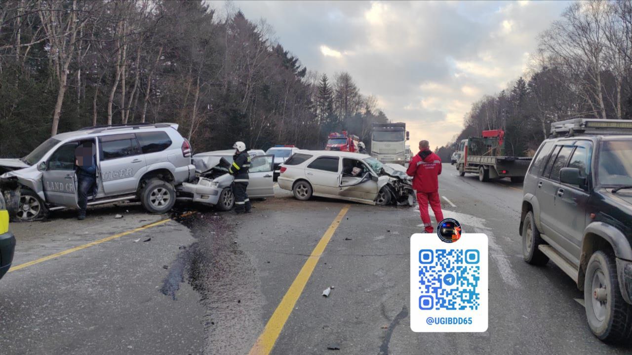 Столкновение произошло 20 ноября в 9:35 на 26 км дороги Южно-Сахалинск — Корсаков. Ранее мы публиковали жесткие кадры с места происшествия.