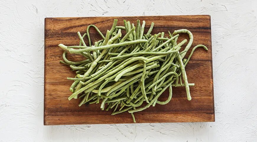 Первым делом важно выбрать качественную фасоль. Следует тщательно отсортировать стручки, убирая поврежденные и некондиционные. У хороших стручков аккуратно обрезаются кончики с обеих сторон. Затем, в кастрюлю объемом два литра, наливается вода и добавляется немного соли. После закипания фасоль помещается в кипящую воду и варится в течение 5 минут.