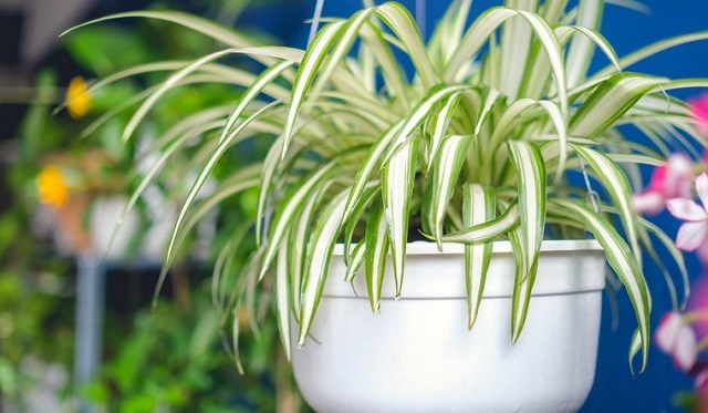 - Хлорофитум: Этот неприхотливый зеленый друг поглощает угарный газ и формальдегид, делая воздух чище, а также уничтожает до 80% бактерий в окружении.