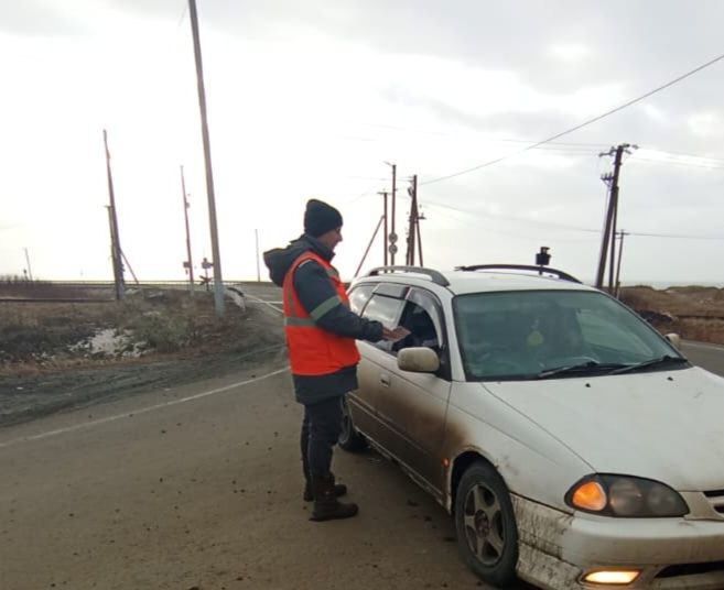 Сотрудники РЖД напомнили водителям о соблюдении правил при пересечении железнодорожных переездов, рассказали о происшествиях с участием автотранспорта и их последствиях, довели статистику количества аварий, и вручили информационные буклеты.