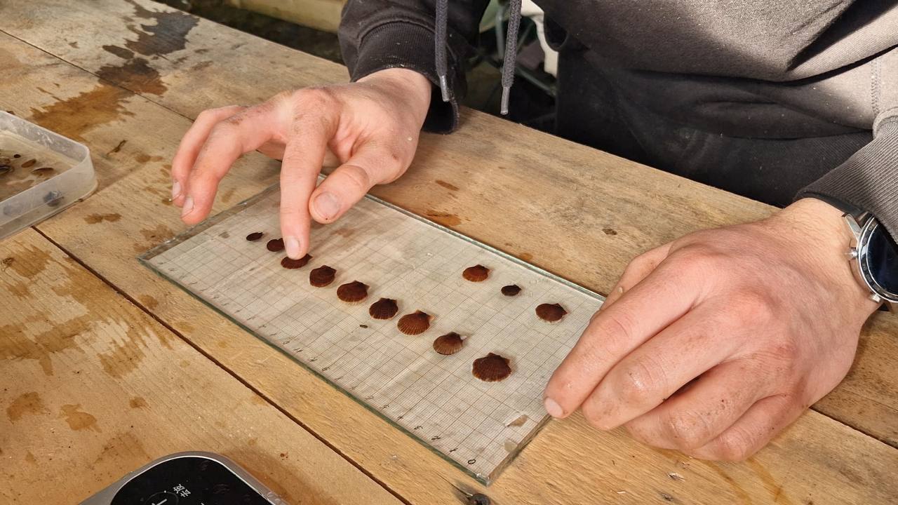 Перед самостоятельным плаванием гребешок осматривают учёные. Делают своего рода чекап - взвешивают, измеряют. Моллюск должен весить не менее 30 граммов, а диаметр его раковины оставлять 8-12 сантиметров. После осмотра - на лодку и вперёд, в море!