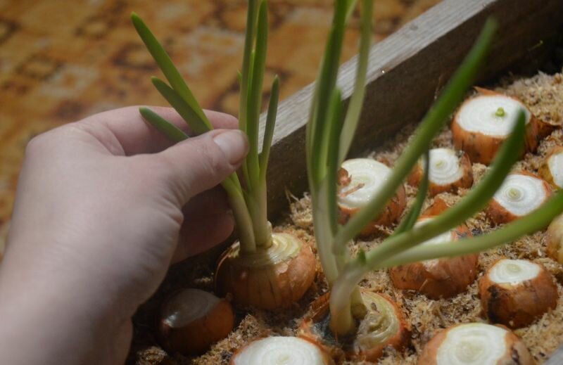 Лук можно успешно выращивать как в почве, так и в воде или на опилках. Начиная данный процесс, важно учитывать температуру и уровень освещения. Например, при температуре около 25 градусов и достаточном количестве света зеленое перо лука может появиться всего за 20 дней. Ставьте емкости на подоконник или на полки с ярким светом — это положительно скажется на росте и качестве урожая.