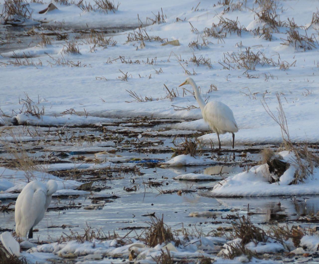 В объектив попали и восточные белые цапли из теплых краев, которые залетели погостить на Парамушир и, вероятно, пока не собираются возвращаться домой, и настороженная местная чечётка.