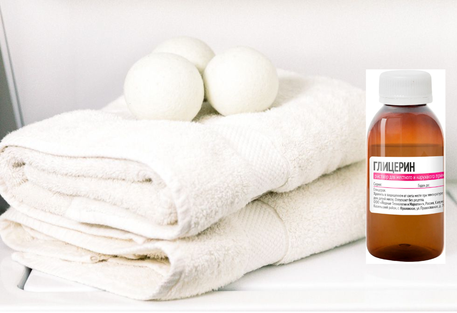 Использование глицерина в стирке было популярно еще несколько десятилетий назад. Чтобы добиться отличных результатов, достаточно добавить всего три столовые ложки глицерина прямо в барабан стиральной машины. В результате после стирки полотенца будут не только мягкими, но и ароматизированными свежестью, что сохранится на протяжении долгого времени.