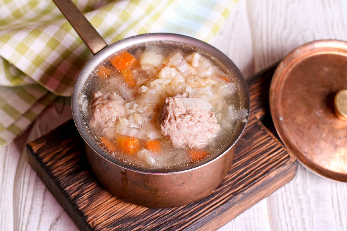 - Приготовление: Нарезать морковь кубиками, сформировать тефтели из фарша, и в кастрюлю добавить рис, морковь и тефтели. Залить водой и варить десять минут после закипания. Затем добавить капусту, посолить и поперчить, и варить ещё три минуты. Накрыть крышкой и настоять 15-20 минут для насыщения вкуса.