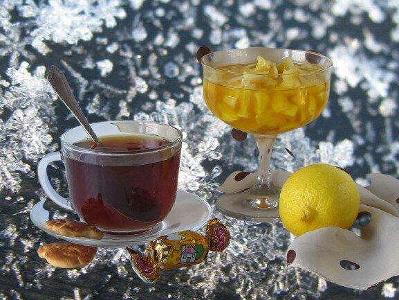 Теплый чай с медом и лимоном