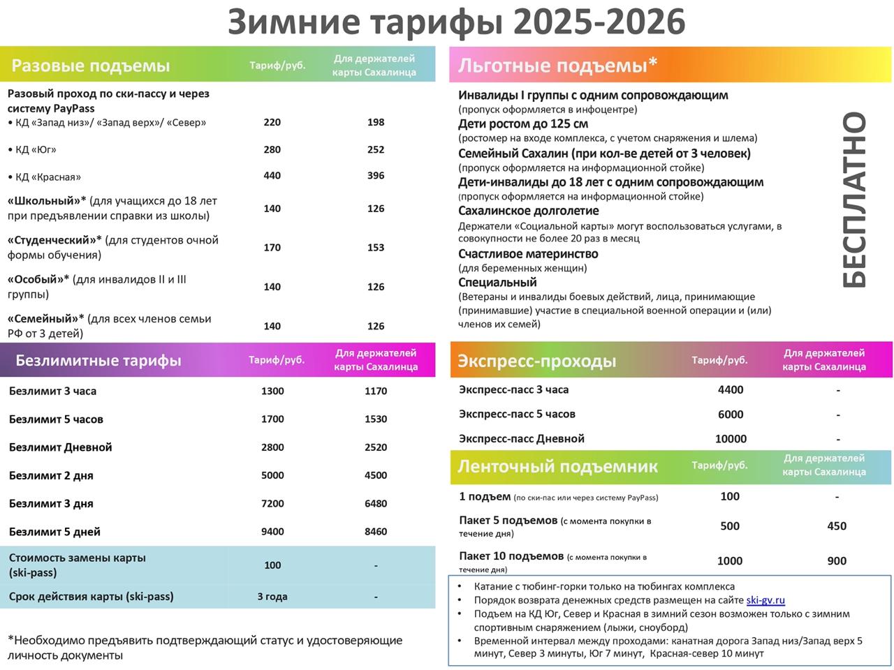Сахалинский комплекс «Горный воздух» опубликовал обновленные тарифы на предстоящий сезон