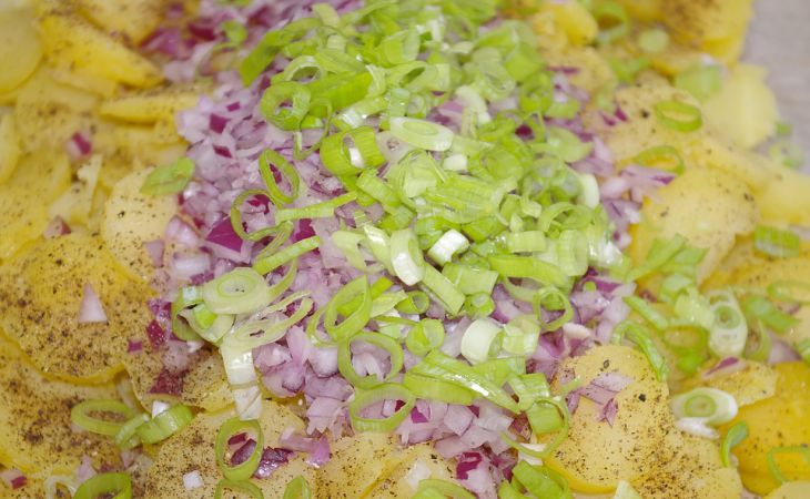 Тем, кто любит универсальные и не очень калорийные блюда, рекомендуется приготовить теплый картофельный салат с лососем в лимонно-горчичном соусе.