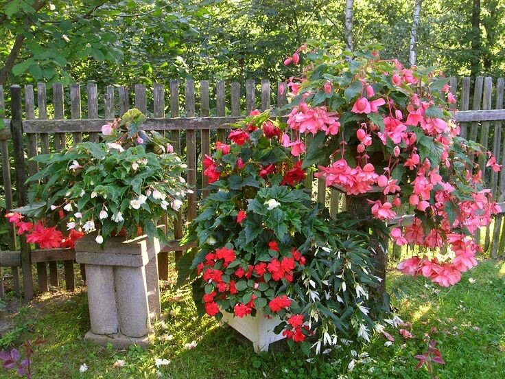 - Бегонии: Эти цветы прекрасно чувствуют себя как в вазонах, так и в кастрюлях. Можно разместить их в самых красивых уголках сада.