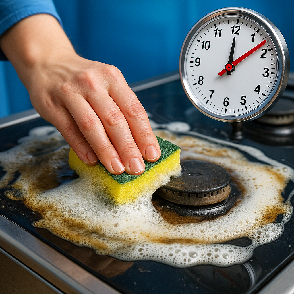 Представьте такую ситуацию: вы нанесли чистящее средство на плиту, провели губкой, но жир остался. Или, например, вы тщательно обработали ванну, тут же смыли, а разводы остались на месте. Кажется, что средство не сработало, но дело в том, что ему просто нужно чуть больше времени!