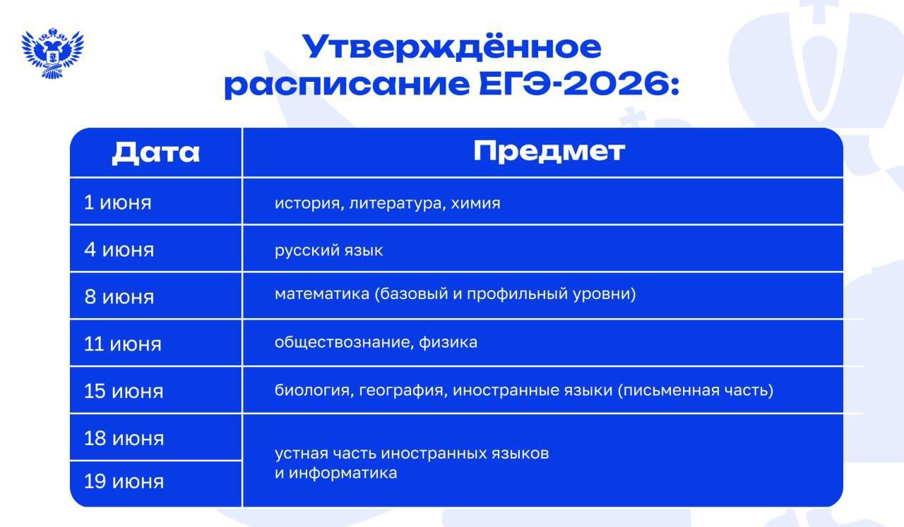 В России утвердили расписание ЕГЭ и ОГЭ на 2026 год