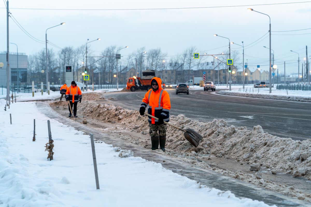 — Ежедневно мы убираем и очищаем от снега проезжую часть, пешеходные зоны, автобусные остановки, радиусы заездов на прилегающие территории. У нас есть стандартная бригада, в которой, как правило, 5-7 дорожных рабочих. Также с нами выходит на линию техника — это погрузчики, тракторы, КАМАЗы, грейдеры. Количество техники может разниться исходя из поставленных задач и объемов работы,