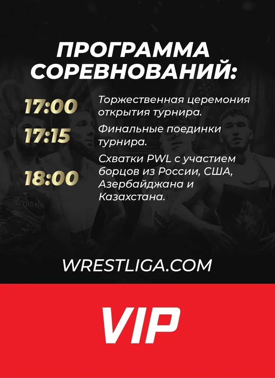 Также в программе запланирована встреча между чемпионом мира Ризабеком Айтмуханом (Казахстан) и бронзовым призёром Олимпиады-2024 Магомедханом Магомедовым (Азербайджан).