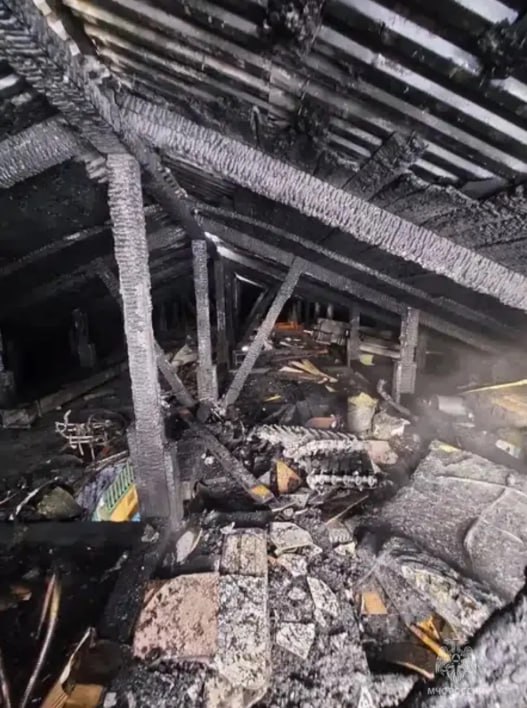 перекрытия частично обуглены и размокли от воды — конструкция может рухнуть при малейшей нагрузке.