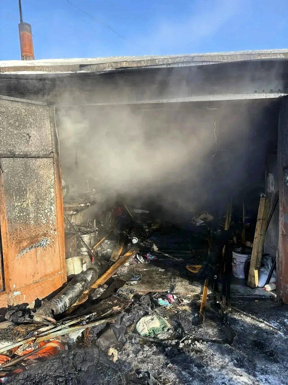 Через 4 минуты пожарные прибыли на место происшествия, где наблюдалось сильное задымление внутри частного гаража.