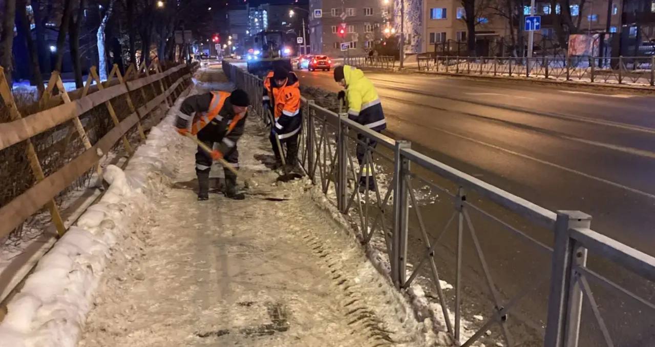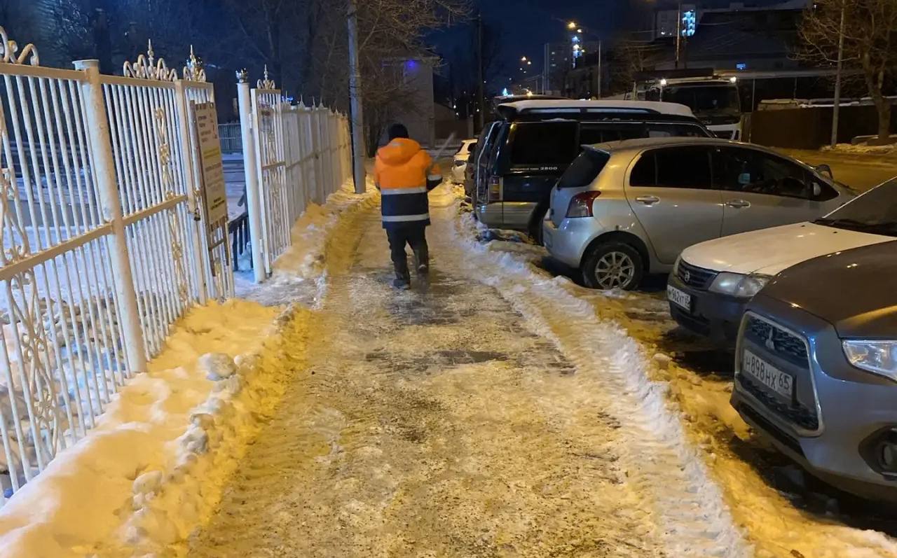 Дорожные службы в круглосуточном режиме по моему поручению со вчерашнего дня ведут обработку всех тротуаров и проезжих частей. Сегодня ночью они работали на улицах Сахалинской, Детской, Венской, Емельянова, Сахалинской, Пограничной, Железножорожной и других. Но несмотря на это проблемные участки остаются.