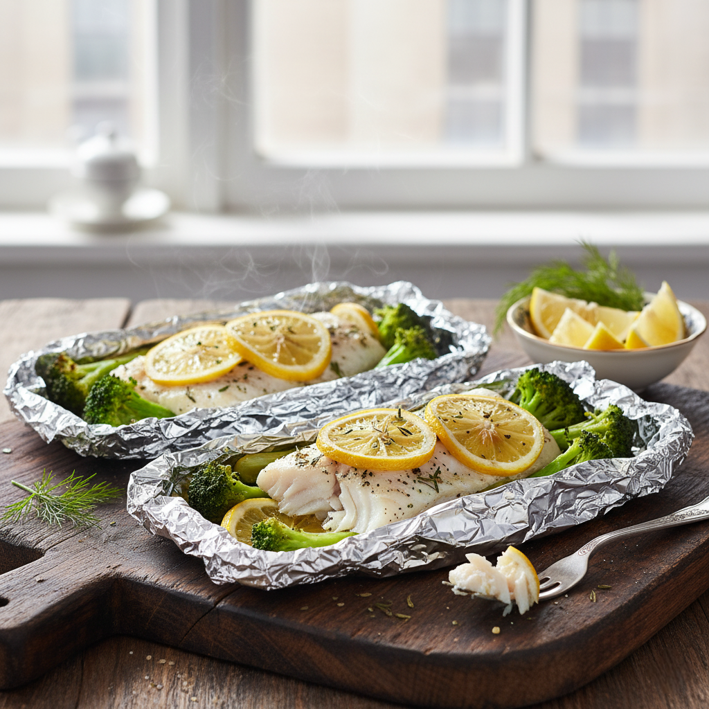5. Подача: Осторожно откройте конверты, чтобы избежать ожога от пара. Переложите их на тарелки и подавайте сразу, полив ароматным соком из фольги. Лимон придаст блюду освежающий цитрусовый аромат.