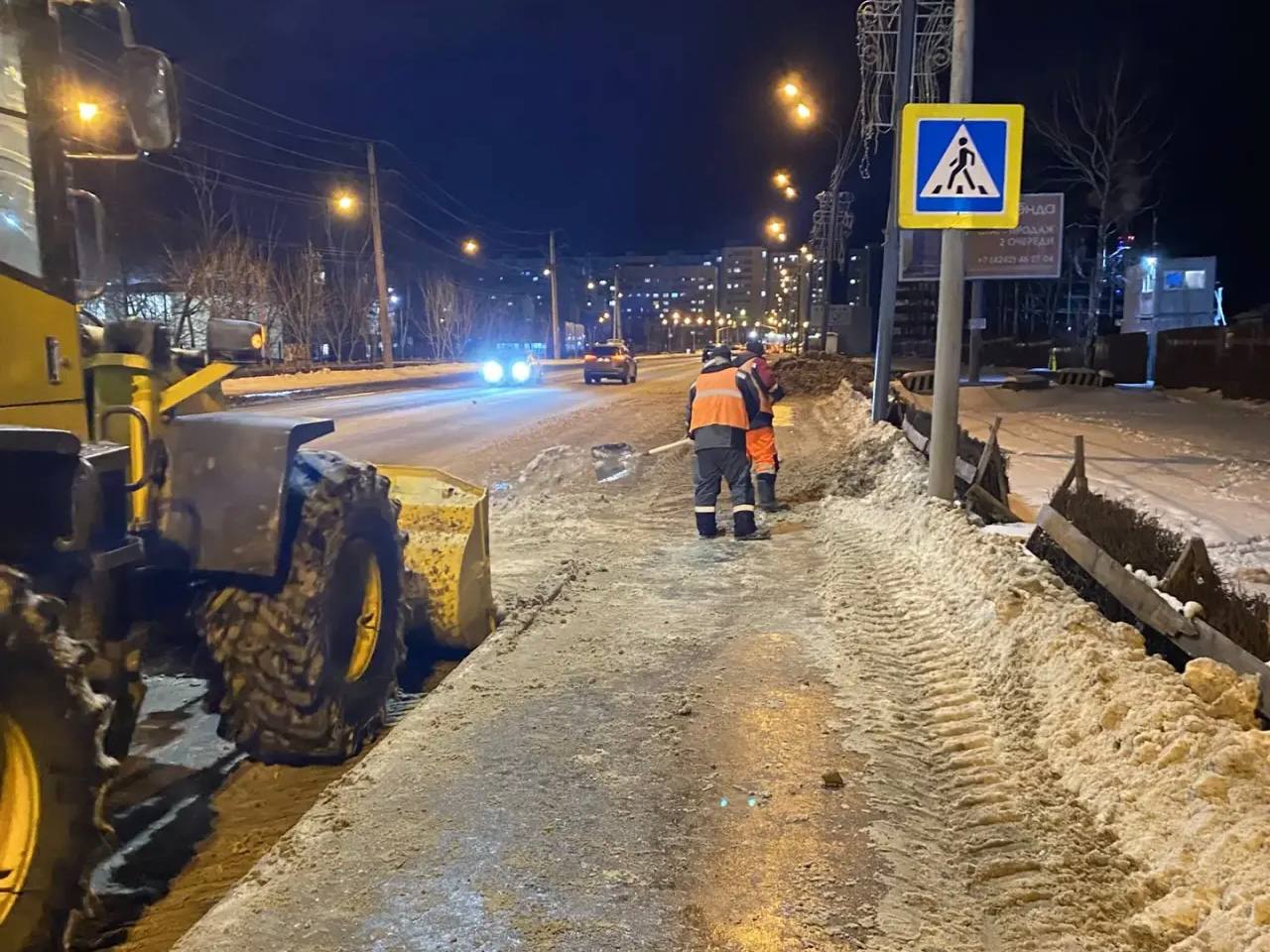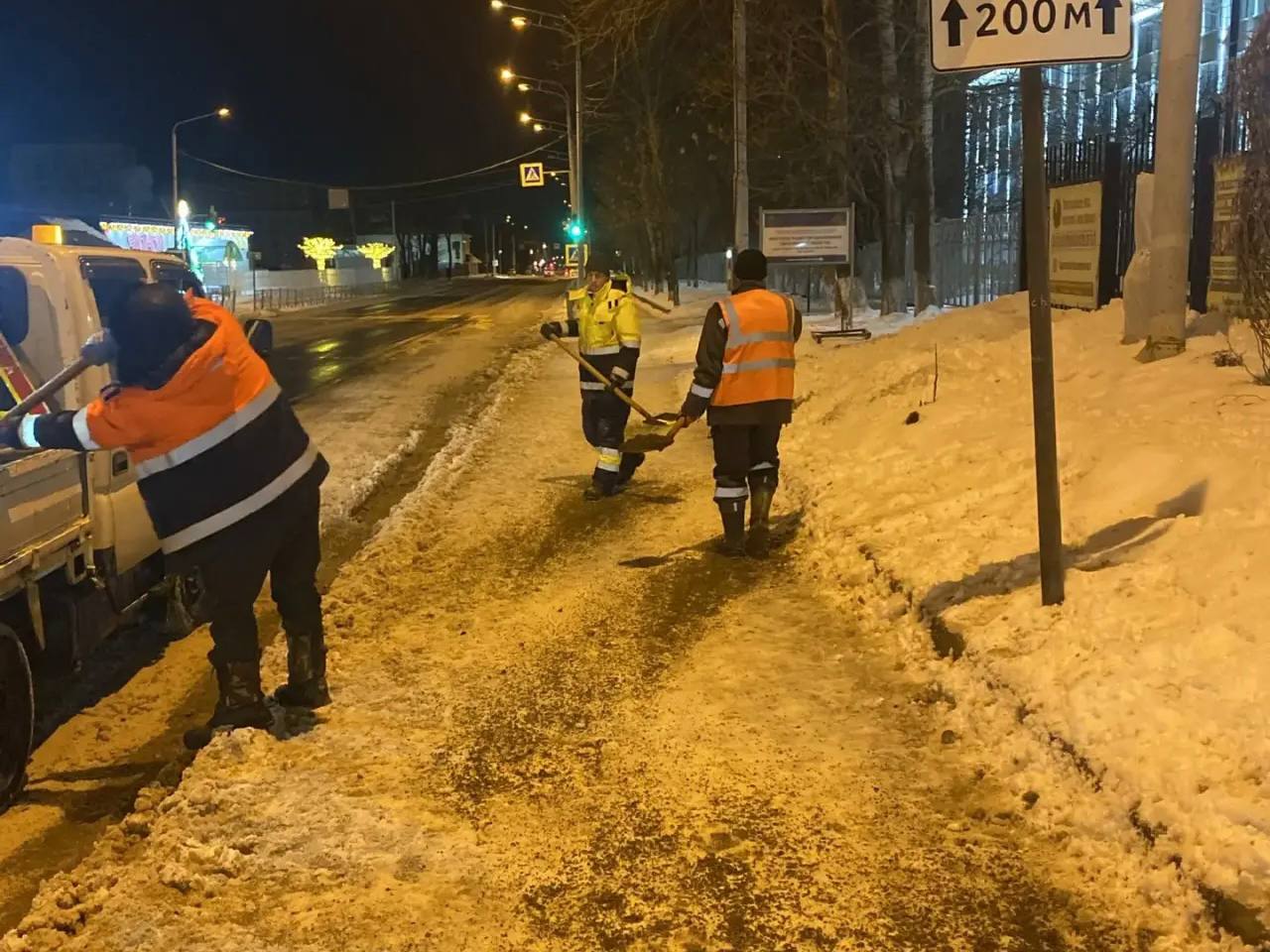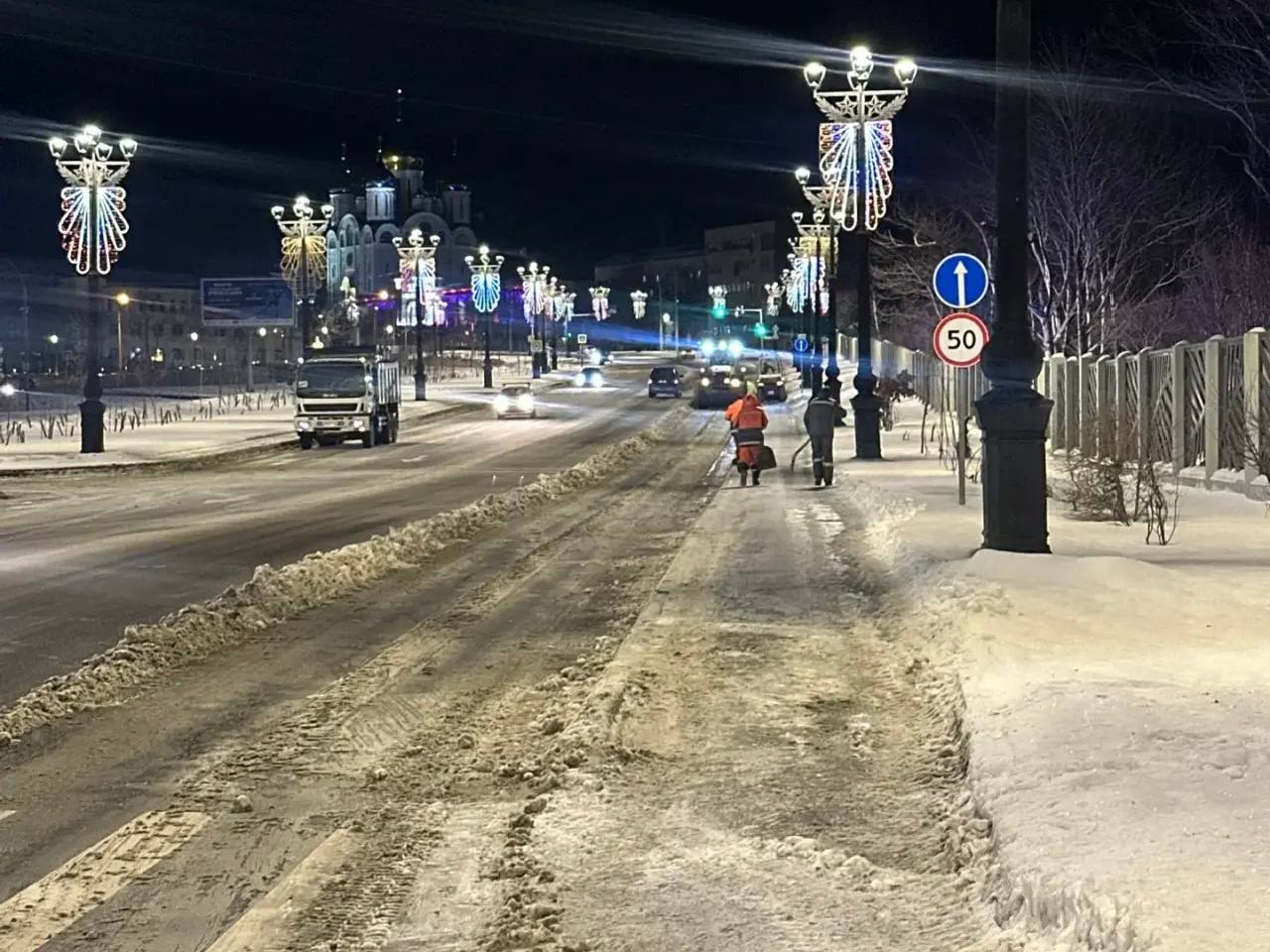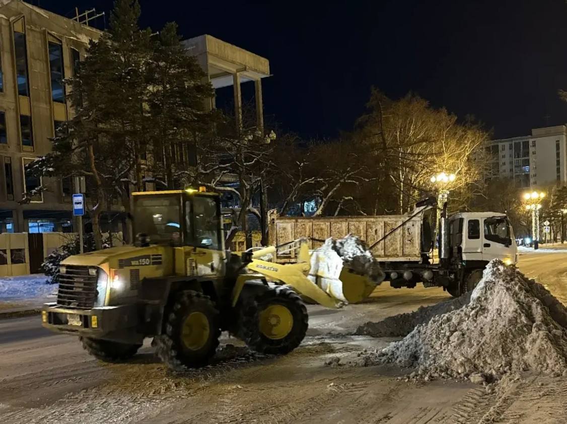 Сегодня ночью сделали акцент на уборке снега и противогололёдных мероприятиях. Бригады работали на улицах Пограничной, Сахалинской, Горького, Карла Маркса, Чехова, Ленина, Детской и других.