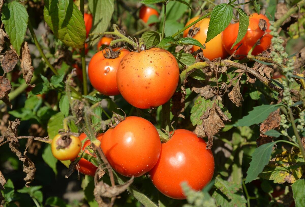 - Черные точки на томатах, которые ярко выделяются на фоне здоровых плодов.