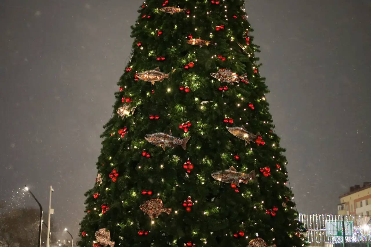 Главная ее особенность — украшения. Вместе с привычными шарами ее ветки украшают уникальные игрушки в форме рыб.