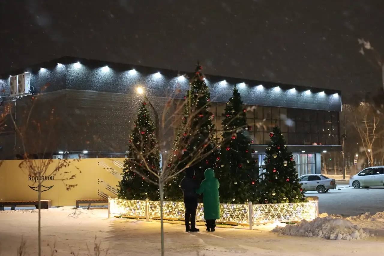 В Корсакове завершилось украшение одной из самых популярных локаций — набережной реки Корсаковки. Здесь установили необычную новогоднюю ёлку, вдохновлённую морской тематикой и уникальной островной природой.