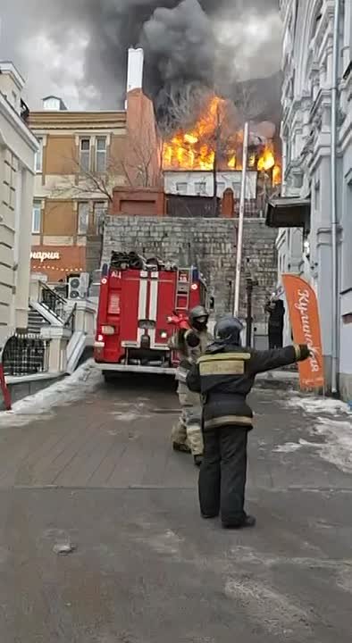 В центре Владивостока произошло серьезное ЧП. Полыхает историческое здание — дом Элеоноры Прэй, расположенный в Почтовом переулке. Огонь быстро распространяется по строению, площадь пожара уже составляет около 300 квадратных метров.